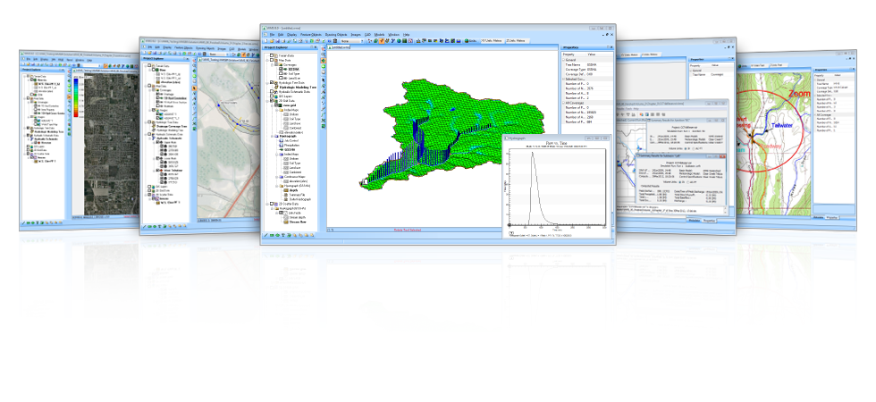 WatershedModelingSystem(WMS)は、降雨流出解析、都市流出解析、分布型水文解析、暴風雨水解析、洪水頻度・ピーク流量解析、貯水池水質解析、洪水解析のためのモデルを用いて、河
